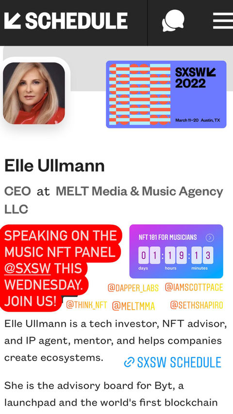 Elle Ullmann is an American entrepreneur, media mogul, tech investor, and undoubtedly the queen of connecting people. She is the founder of Melt Music & Media Agency: a full-service marketing, technology, and licensing conglomerate. With a focus on influencer marketing, AI, and licensing, MELT assists personal brands in maximizing their potential by leveraging their audience and building communities around emerging technology & IP portfolios."